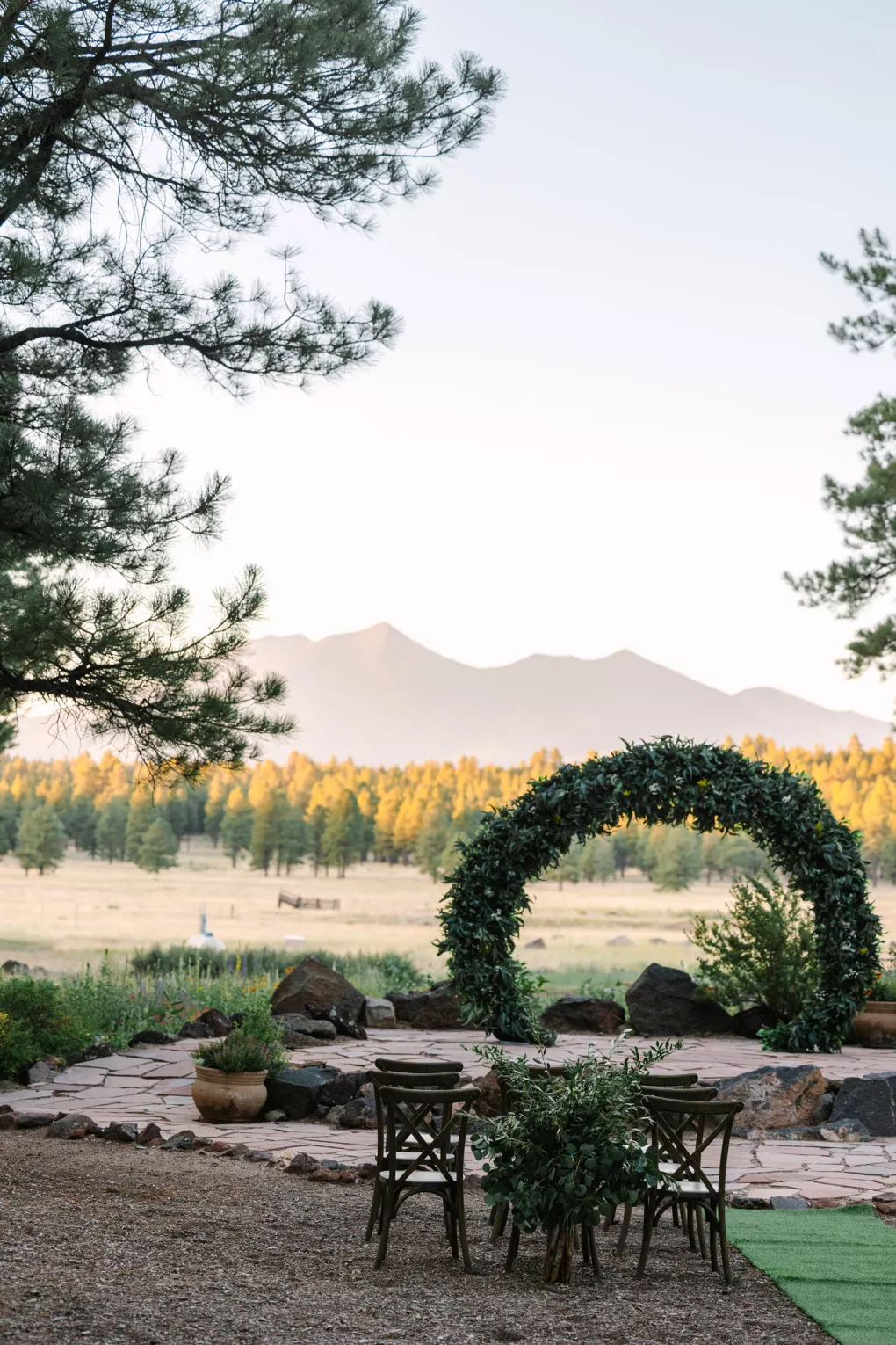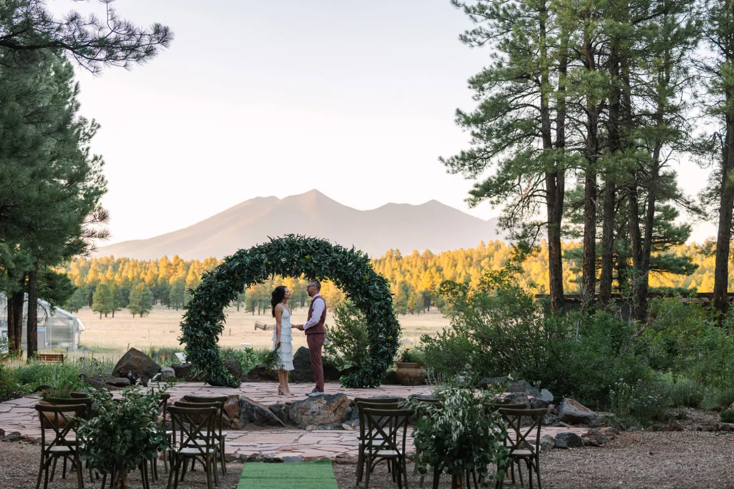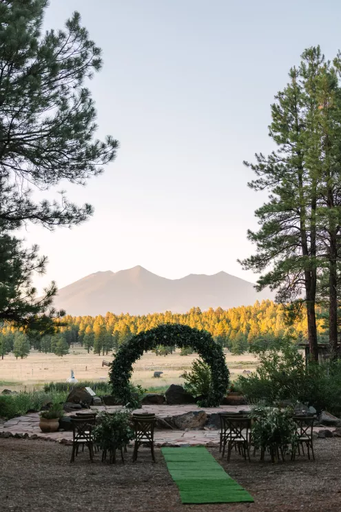 Situated in the Coconino National Forest near Flagstaff, Arizona, lies The Arboretum. Covering over 200 acres of private land, the arboretum features gardens of native flowers of the ponderosa forest, along with a stunning view of the San Francisco Peaks and a perfect setting for a magical woodland wedding.