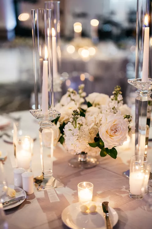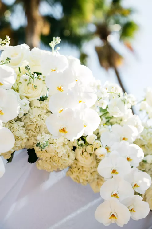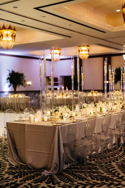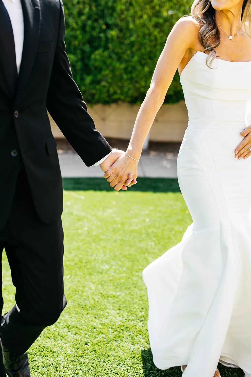 Sometimes our family really does know us best, and for Lauren and Eric, that couldn’t be truer. The couple met through their parents, and in 2019, a parent-organized happy hour set their story in motion. Family was the heart of their wedding. They were married with their maternal grandfathers’ rings, a tradition for Eric as the fourth cousin to do so. Lauren’s bouquet held a photo of her maternal grandmother and her paternal grandfather’s cufflinks, keeping loved ones present throughout the day. The ceremony took place beneath a chuppah of cascading white florals, followed by mingling with a beer burro adorned with a flower crown. The hall transformed into a whimsical forest with centerpieces featuring trees wrapped in ranunculus and hydrangeas. The night overflowed with heartfelt speeches and celebration, marking the couple’s next chapter.