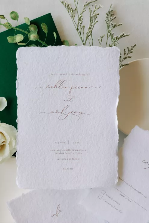 Whether you are looking for a fully bespoke invitation suite or a curated semi-custom design, we offer exclusive in-person and virtual sessions to ensure every detail reflects your unique love story. Serving couples from Scottsdale to Sedona and beyond, Copper Cactus Company creates invitations that do more than announce a date, they set the tone for your wedding.
