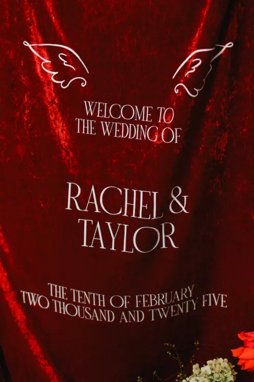 A sharp team of vendors brought Cupid's Garden to life with sculptural florals, a dramatic staircase entrance and a bold color palette.