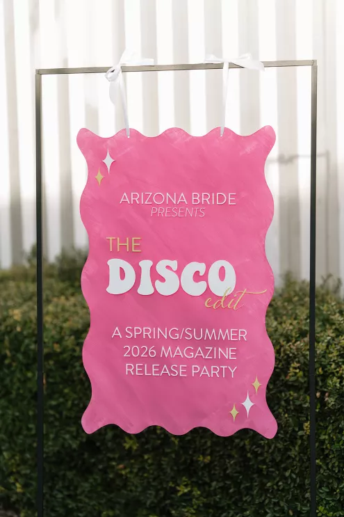 Arizona Bride welcomed the local wedding community to Culinary Dropout in Tempe for a high-energy, disco-inspired celebration marking the release of the Spring/Summer 2026 issue. Planned and designed by Bash Boulevard, the evening leaned fully into playful glamour, bold color and nostalgic sparkle — setting the tone from the moment guests arrived.