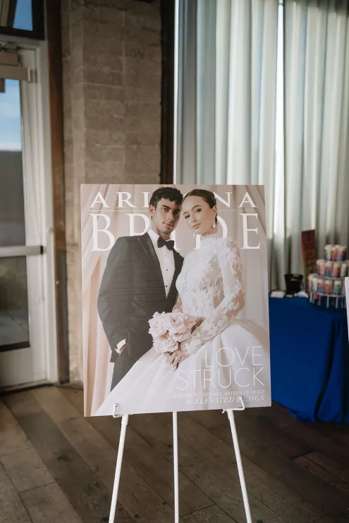 Interactive experiences invited guests to linger, including a glittering beauty moment from The Glitter Lab and a photo booth experience by PicBooth AZ. Hair and makeup for the Arizona Bride team was provided by Bridal Artistry Collective, while real-time content coverage from Got.Hitched captured the celebration as it unfolded.