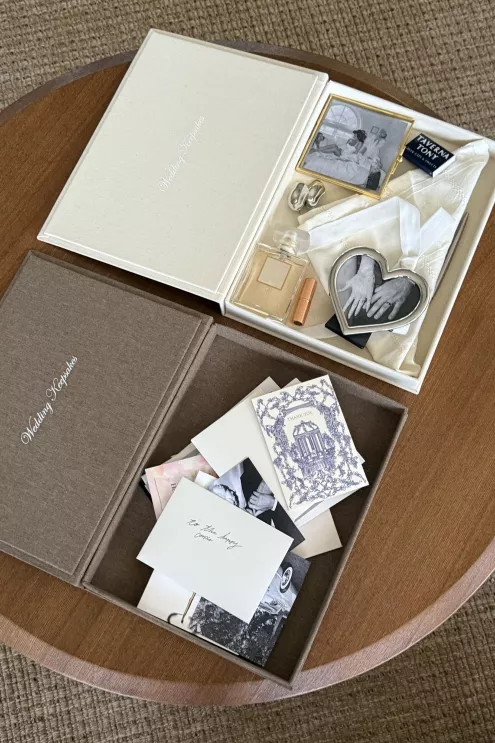 THE CEREMONY CLUB (@theceremonyclub) has reimagined the coffee table book, creating a keepsake box that’s as beautiful as it is meaningful. Known for unique wedding services like custom newspapers, pizza boxes and more, the brand has expanded its collection to include chic photo albums and, most recently, swoon-worthy keepsake boxes crafted to complement any abode. Choose from two stunning options, the Wedding Guests Love Letters Keepsake Book Box or the Linen Wedding Keepsake Book Box, each priced at $55, or treat yourself to both for $100. Not only do they keep your wedding treasures safe, but they double as elegant home décor. Complete the look with The Ceremony Club’s artfully designed photo albums, capturing everything from the engagement to the honeymoon.
